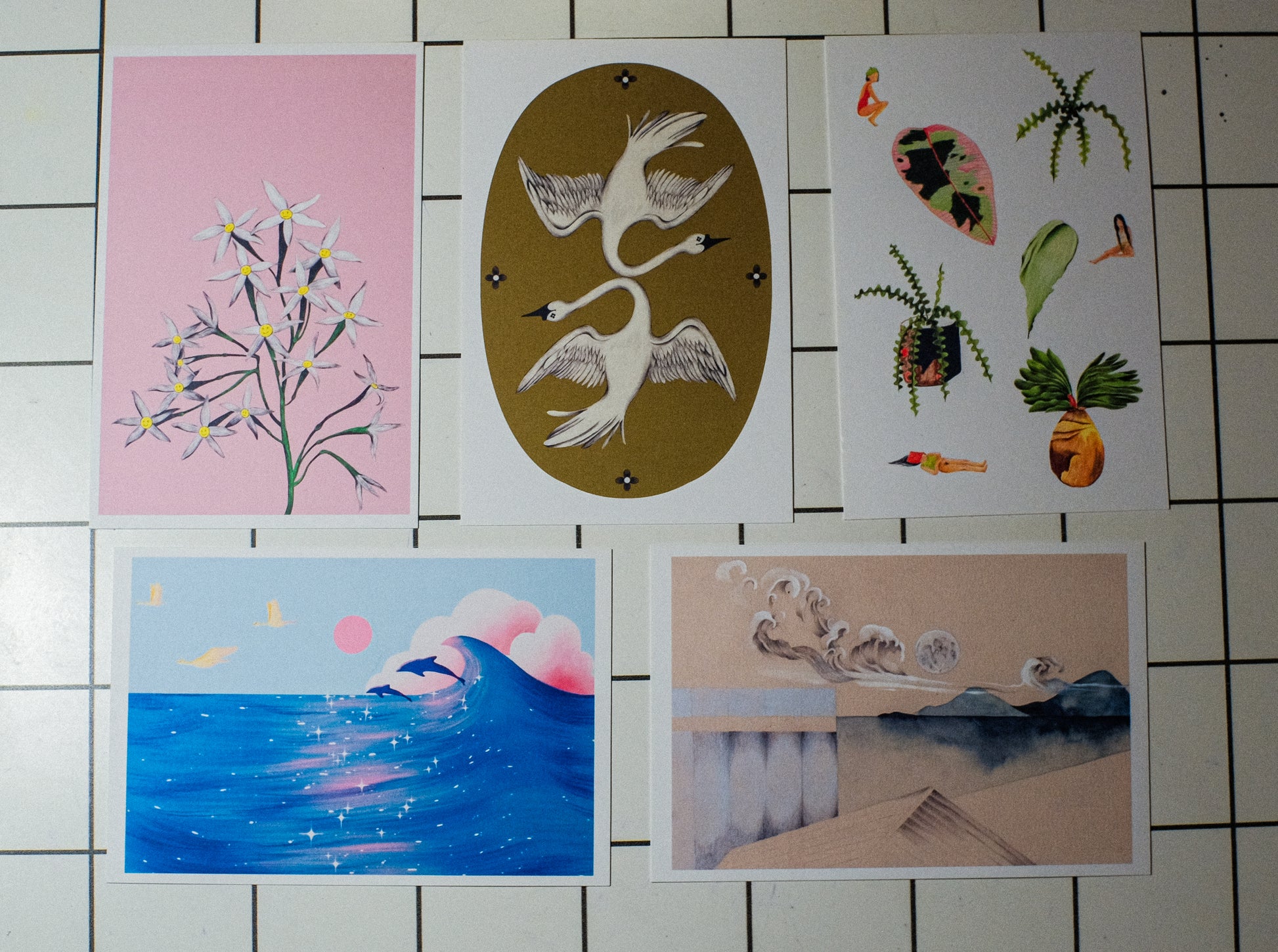 A set of 5 illustration postcards. Printed on beautiful matte paper.